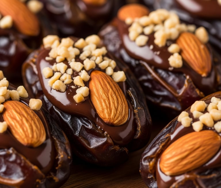 Explore our delicious chocolate almond dates in stunning visuals.